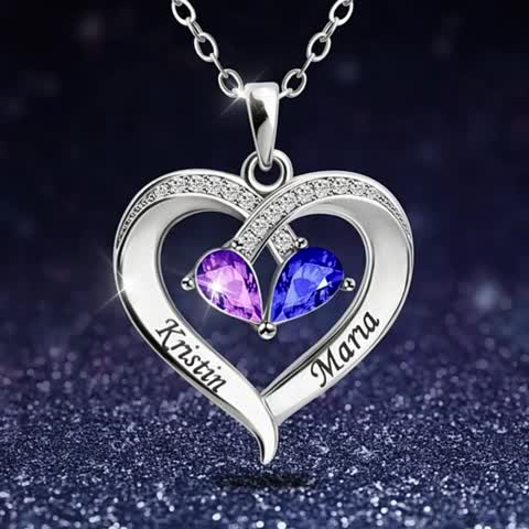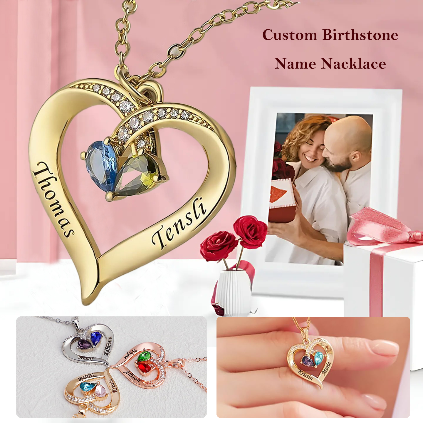 【UNIQUE】You can choose 2 simulated birthstones for design and engrave 2 special dates/names/text on the pendant.