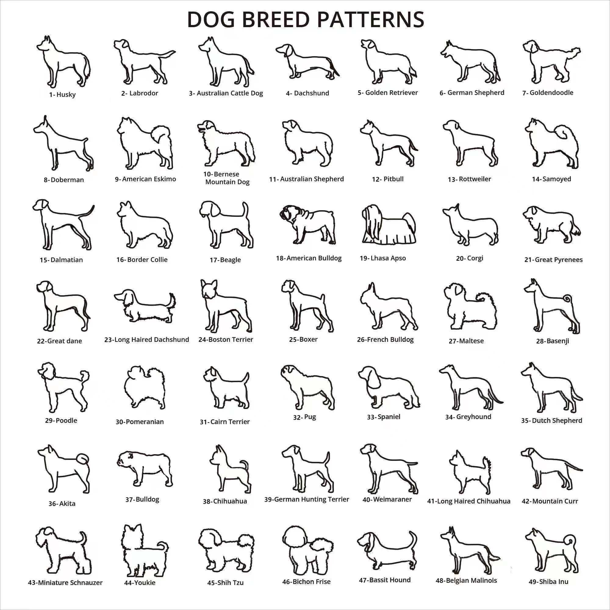 Choose from a variety of 49 dog breeds, each with its unique shape, and customize with a name in the middle.