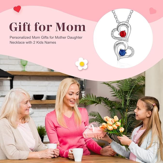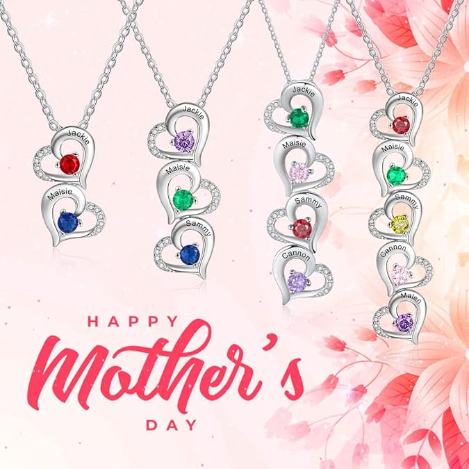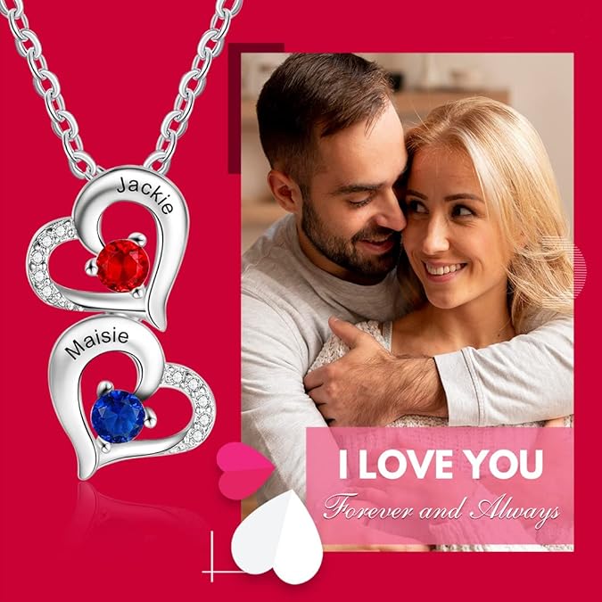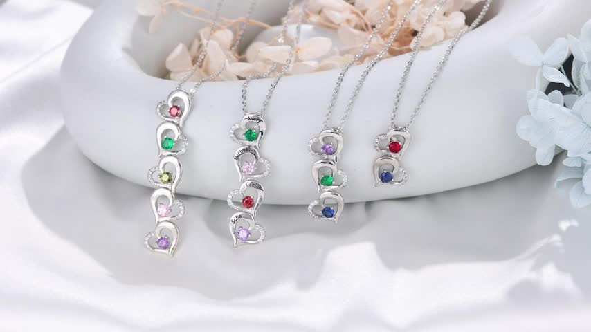 【UNIQUE】You can choose 2 simulated birthstones for design and engrave 2 special dates/names/text on the pendant.