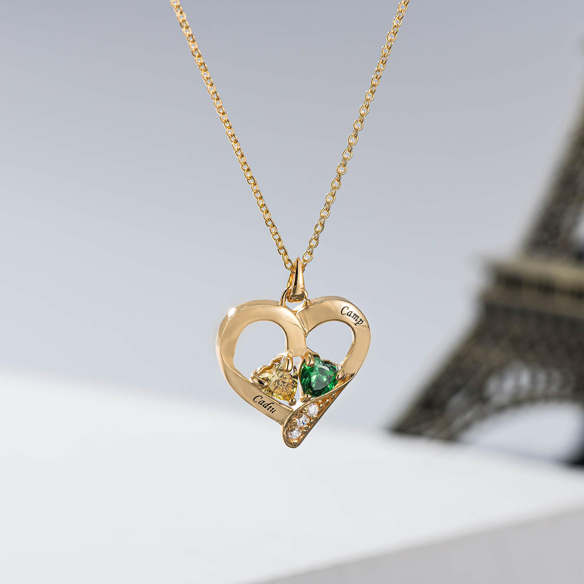 【UNIQUE】You can choose 2 simulated birthstones for design and engrave 2 special dates/names/text on the pendant.