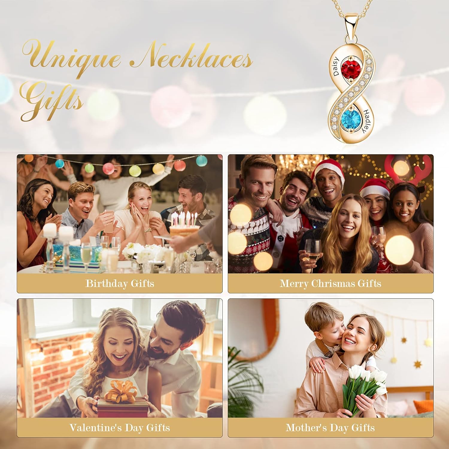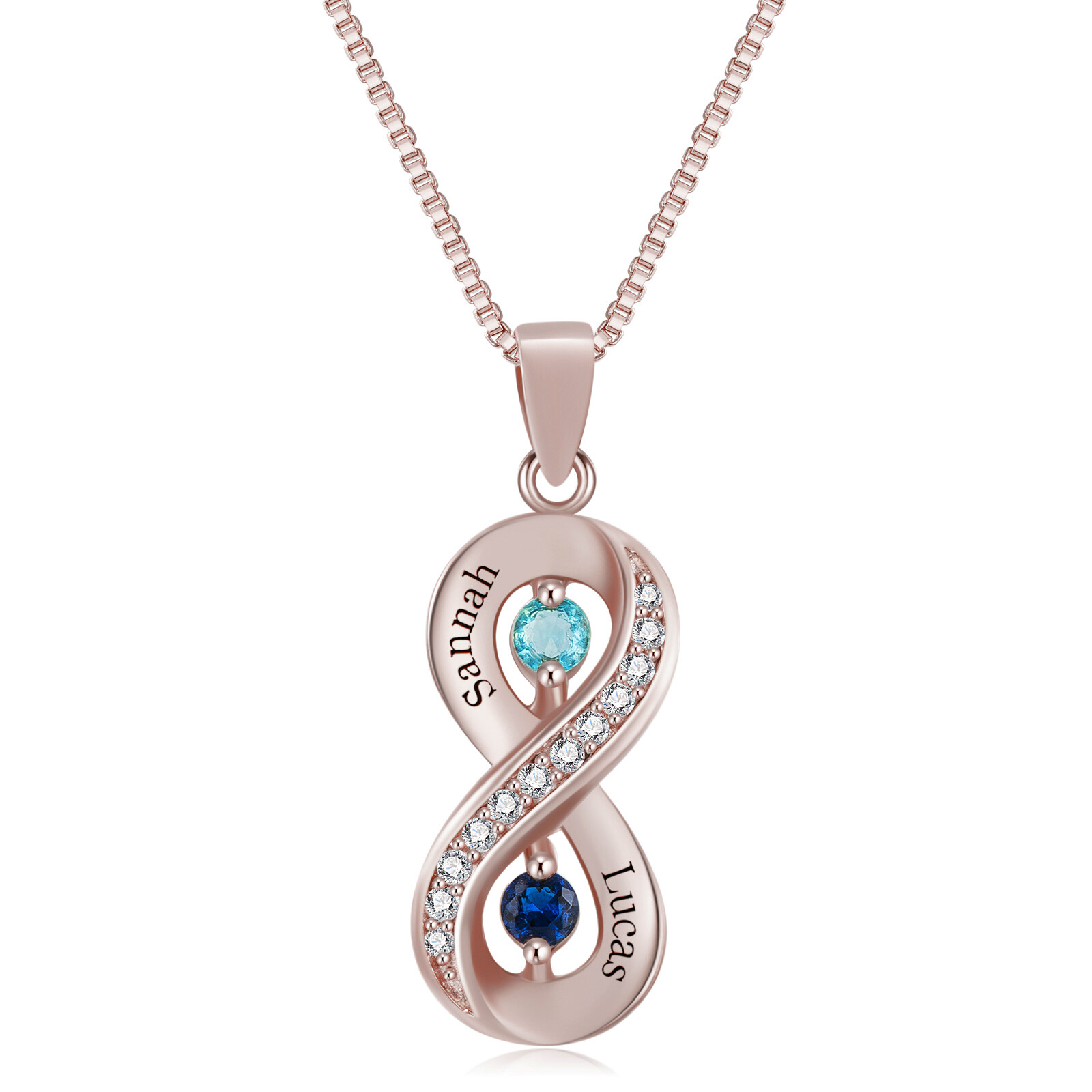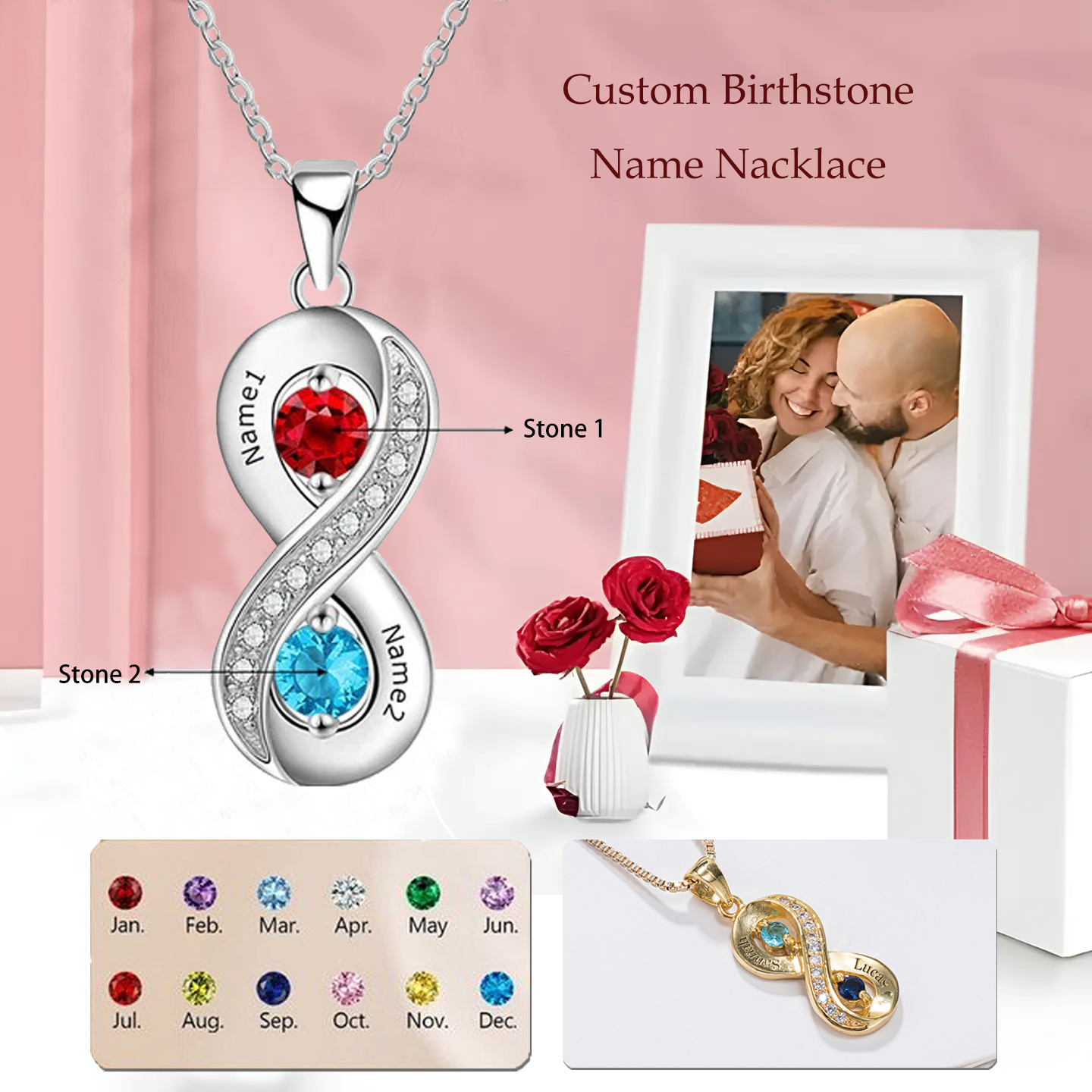 【UNIQUE】You can choose 2 simulated birthstones for design and engrave 2 special dates/names/text on the pendant.