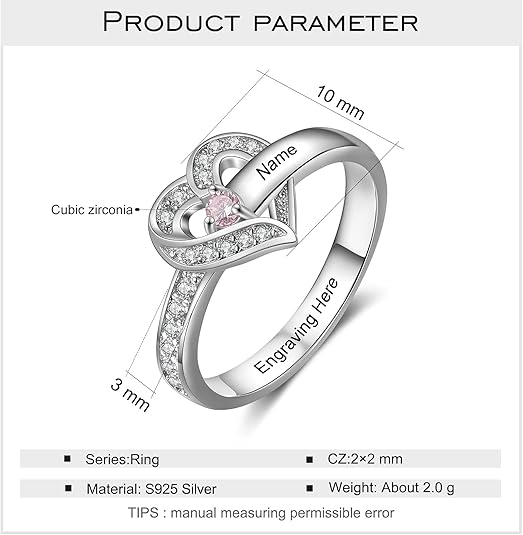 【UNIQUE】You can choose 1 simulated birthstones for design and engrave 1 special dates/names/text on the ring.