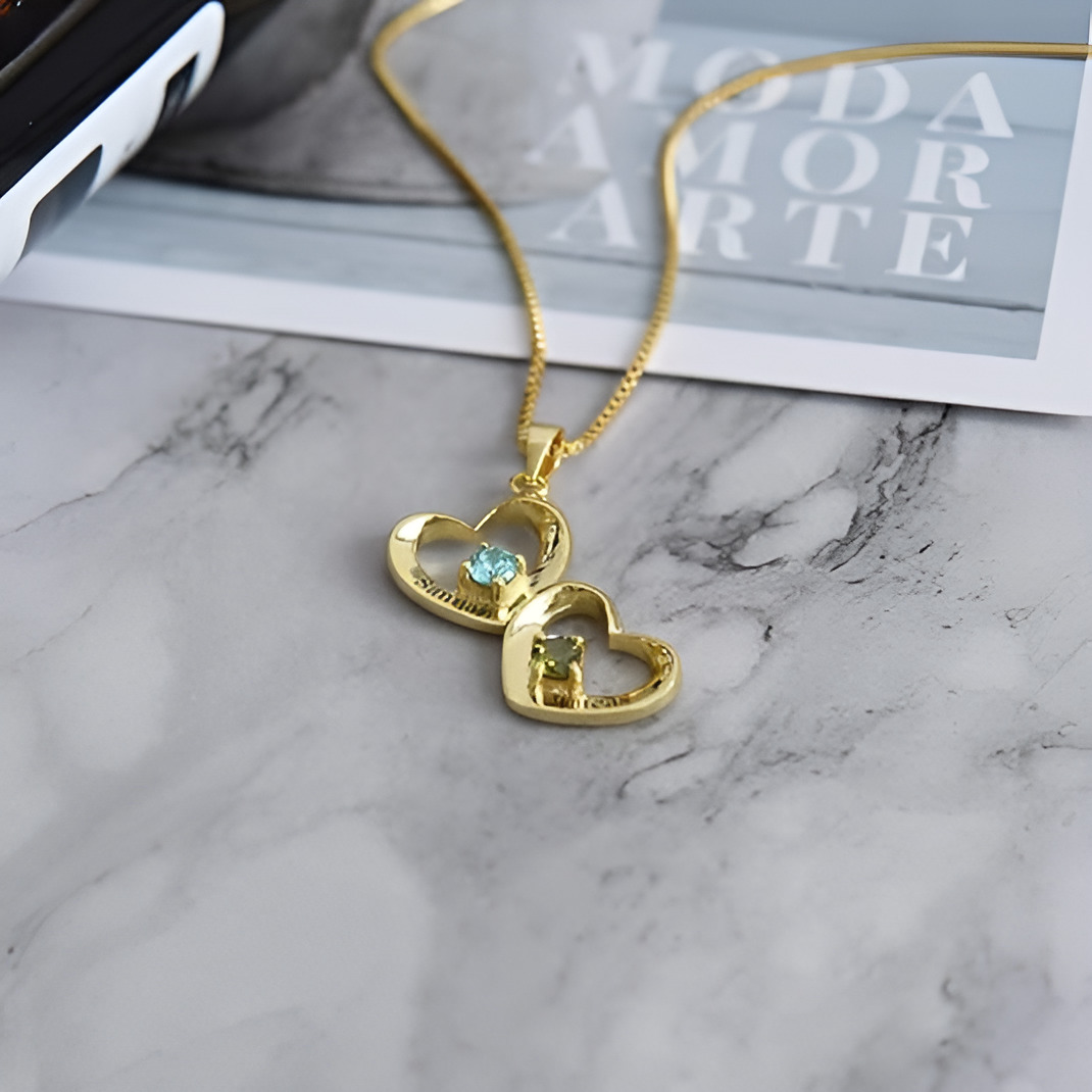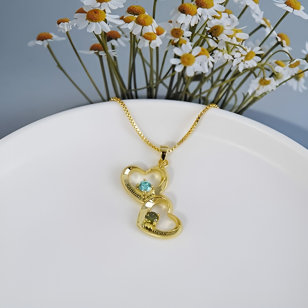 【UNIQUE】You can choose 2 simulated birthstones for design and engrave 2 special dates/names/text on the pendant.