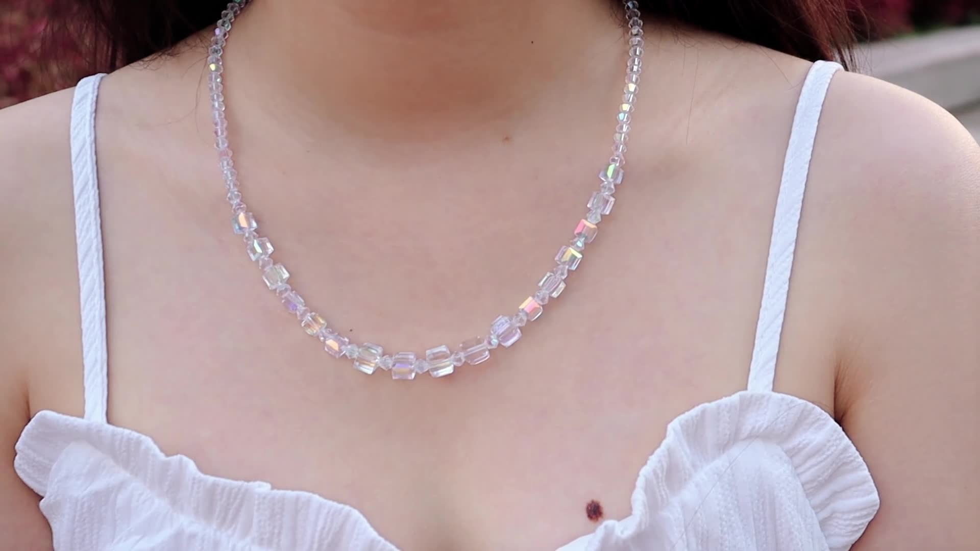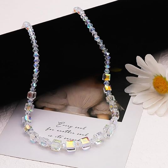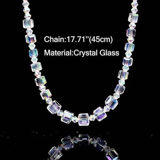 MATERIAL --- This iridescent crystal necklace is made of crystal glass, smooth, clear, shiny. Very beautiful.