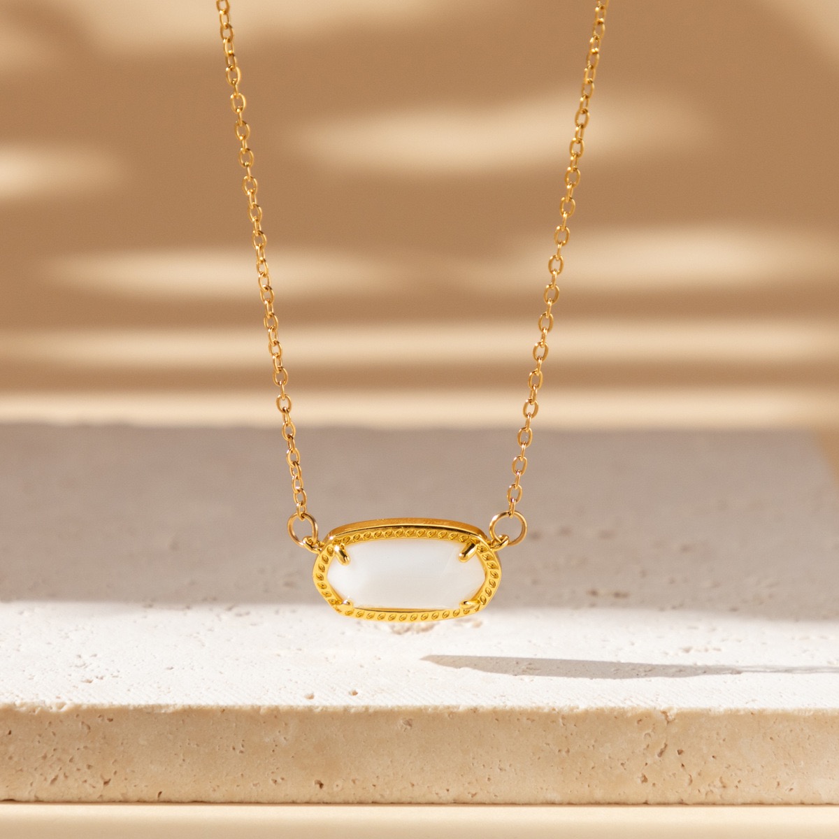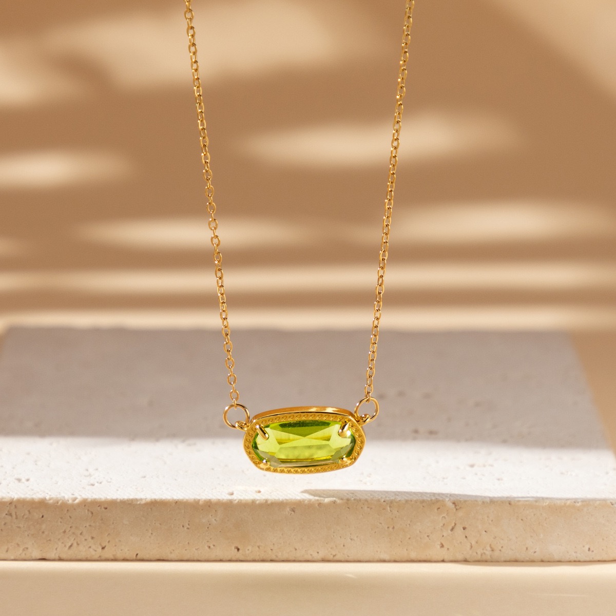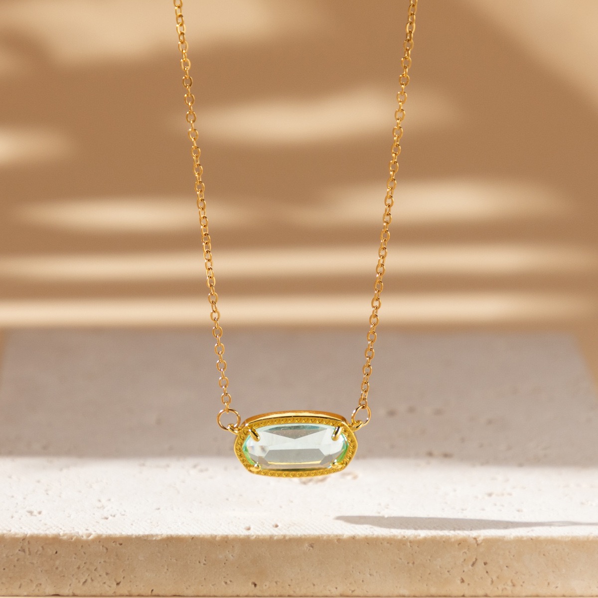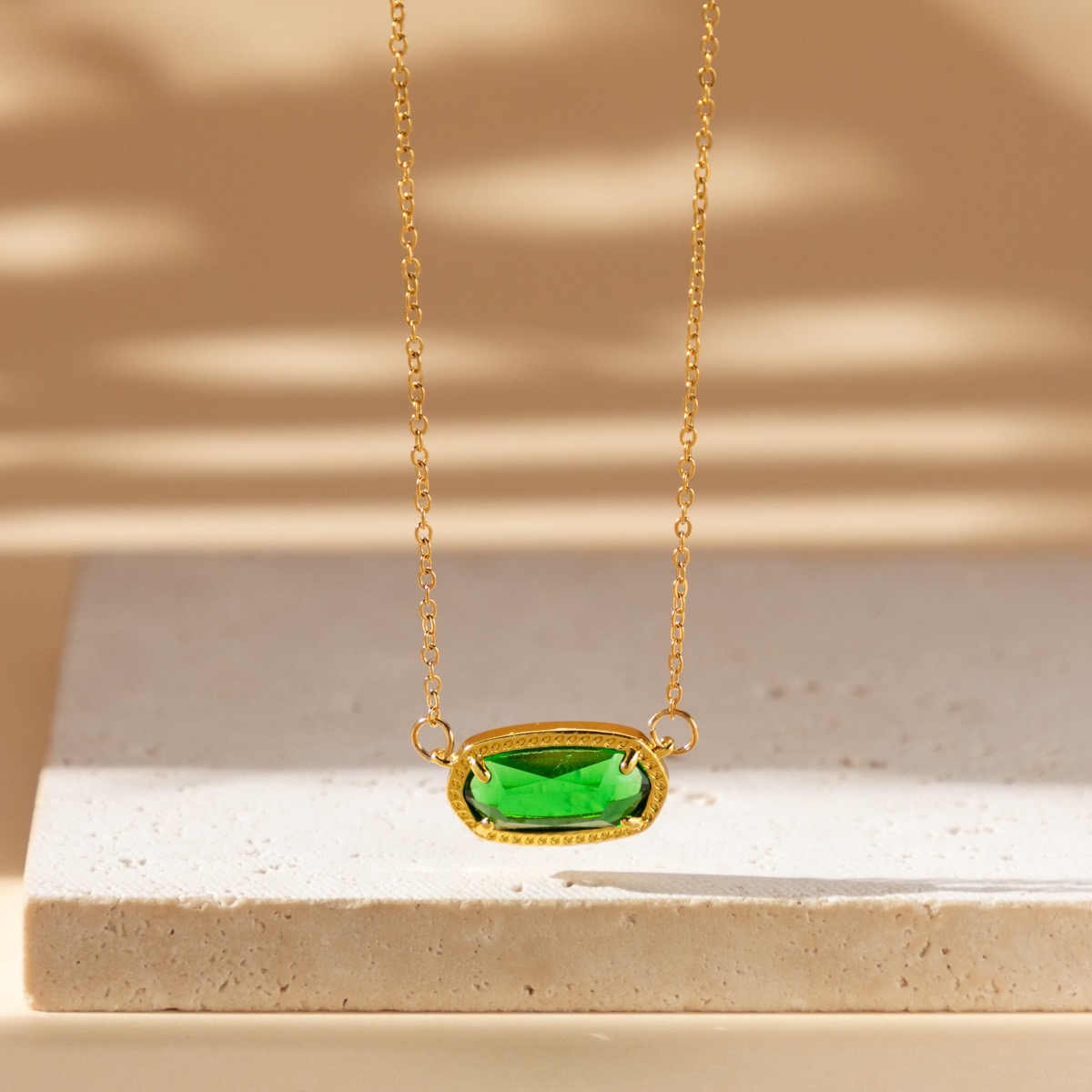 【Size and Material】 The necklace is 53 cm long and weighs 4.3 grams. It is firmly set with a 1.7 cm long and 1 cm high green gemstone. The chain is made of stainless steel, and the surface of the chain is 14K gold plated. It is lead-free, nickel-free, and chromium-free. It is hypoallergenic, does not irritate the skin, and has a long-lasting and shiny luster that is not easy to fade. Comfortable to wear, beautiful and durable.