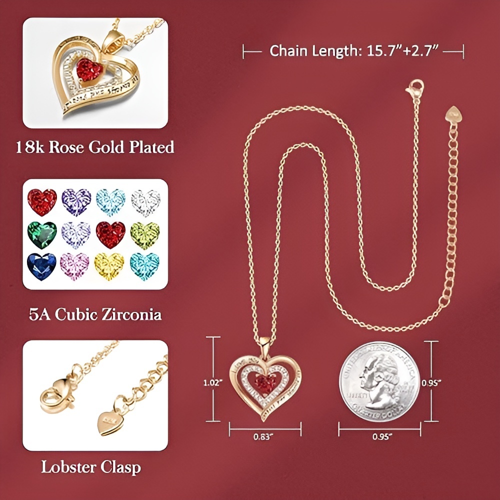 【Ideal Gift for Her】This heart necklace for women is engraved with the words "I love you for always and forever", symbolizing love and affection for someone. The CZ in the middle of the pendant is also a heart-shaped design. This necklace is an ideal gift for Wife, Girlfriend, Mom, Sister, Daughter, Best friend and Yourself on Valentine's Day, Mother's Day, Birthdays, Christmas, Anniversary.